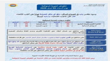 • الأرصاد الجوية تحذر من ظاهرة جوية خطيرة تضرب البلاد فجر اليوم